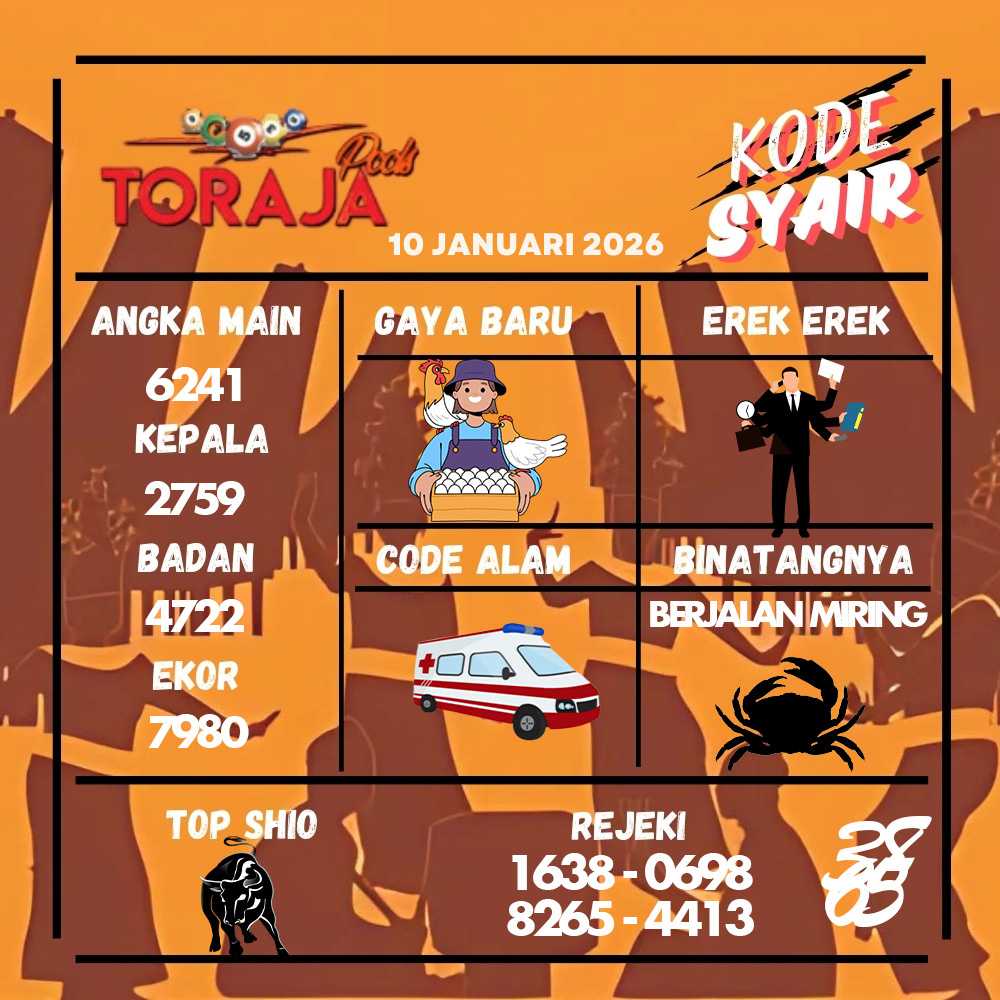 Kode Syair Toraja Pools 09 Januari 2026